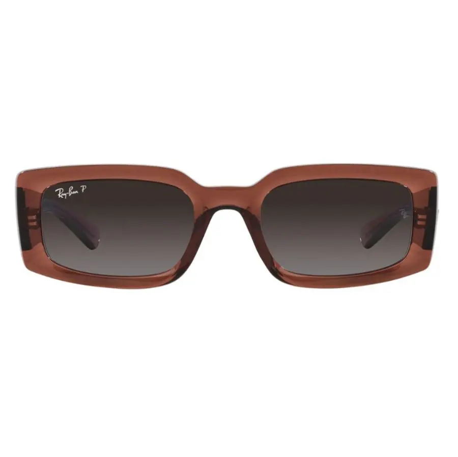 Son rectangulares con un estilo moderno, fabricadas con acetato de origen biológico. Cuentan con una montura marrón transparente y lentes grises degradadas, que ofrecen una protección UV completa.