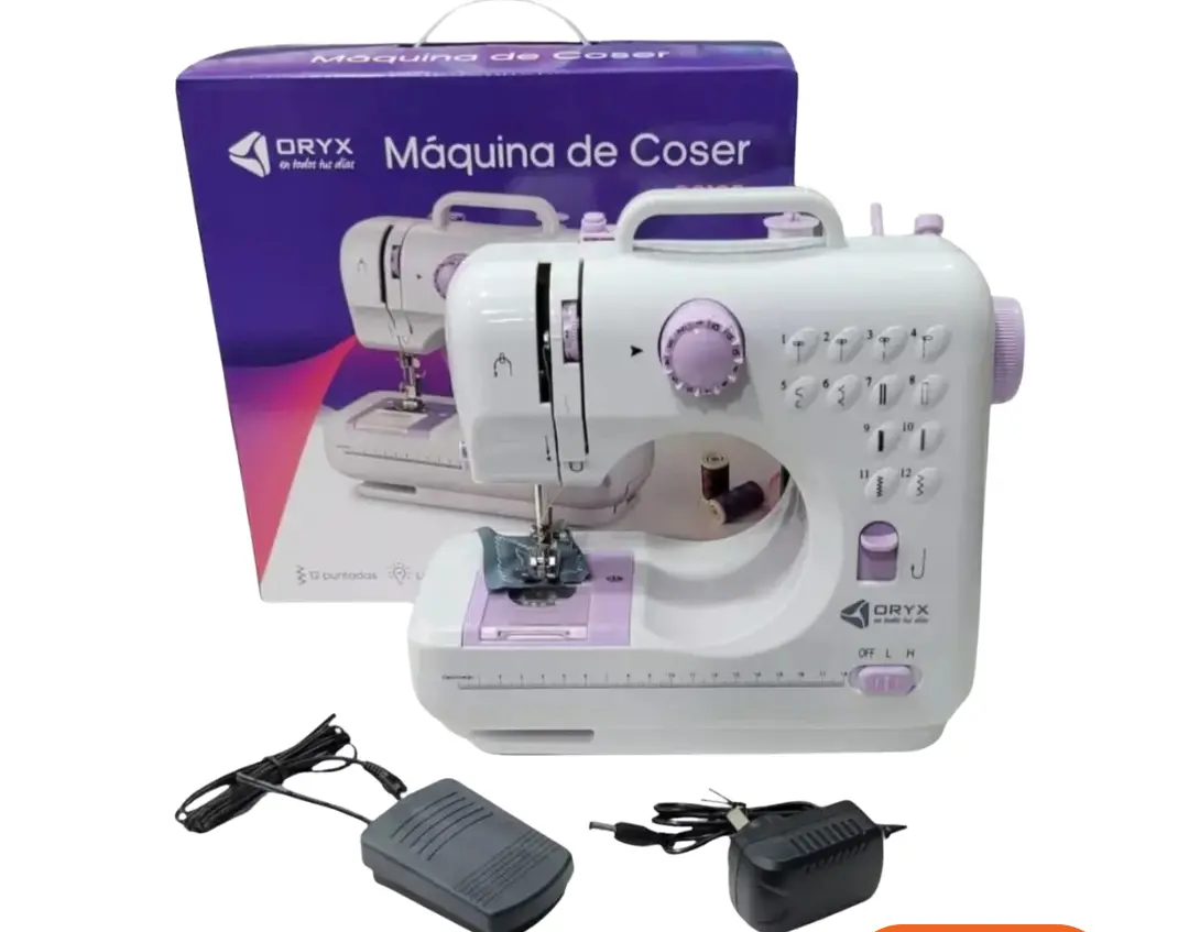 Herramienta perfecta para adentrarse en el arte de la costura. Esta máquina mecánica Oryx combina simplicidad de uso con funcionalidades esenciales, ideal para proyectos domésticos, manualidades y aprendizaje. Color lila moderno y diseño compacto para espacios reducidos.