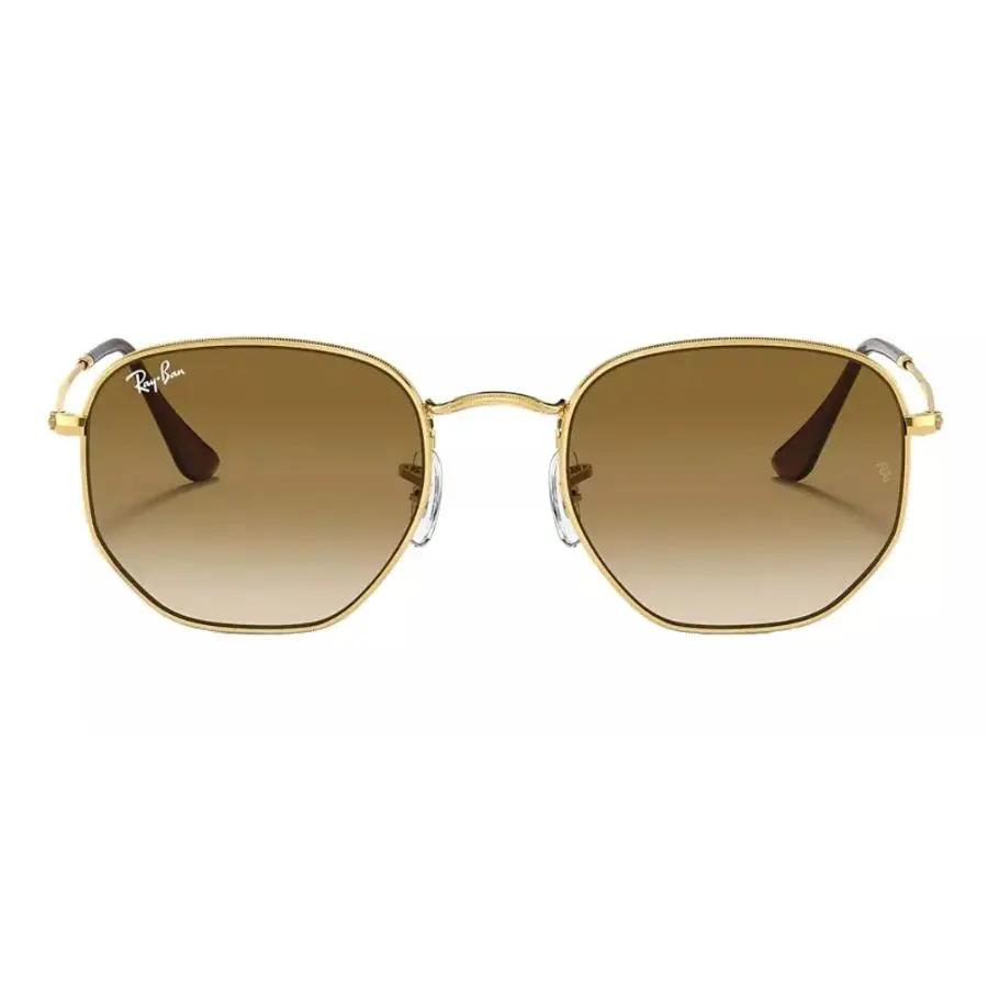 Se caracterizan por su diseño hexagonal, con una fina montura metálica en oro pulido y lentes marrones claro degradadas, ofreciendo protección UV 100%.